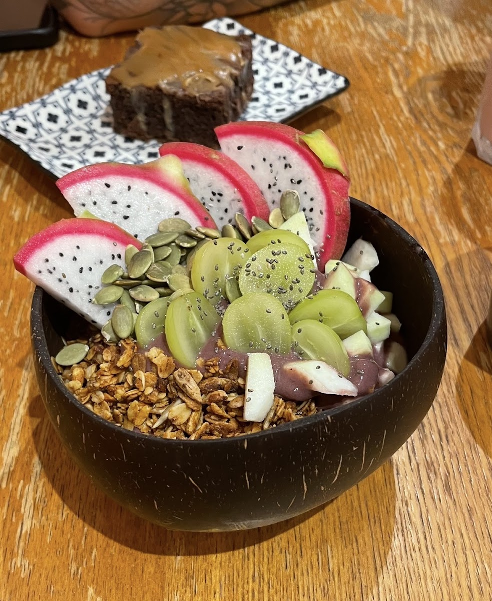 Ordered the Tumeric shot for gut comfort. It's pleasant and definitely not overwhelming despite quite chock full of antioxidant ingredients! Also tried the brownie with Toblerone topping. Understandably very sweet imho can do better with higher cocoa powder content